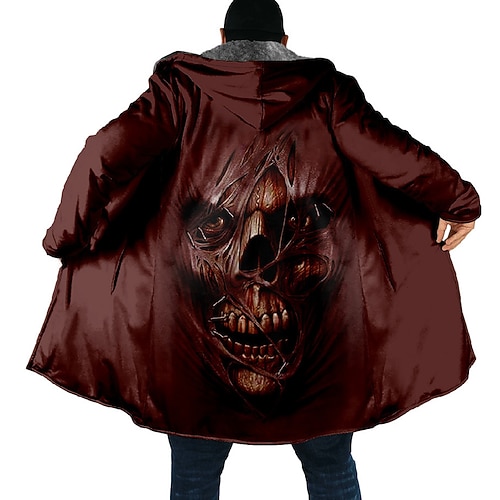 Per uomo Teschi Cappotto Invernale Giacca in Pile Cappotto Calore Termico Confortevole Casual Abbigliamento quotidiano Cerniera Tasca Stampa 3D Autunno Inverno Con Cappuccio Manica Lunga Nero Rosso