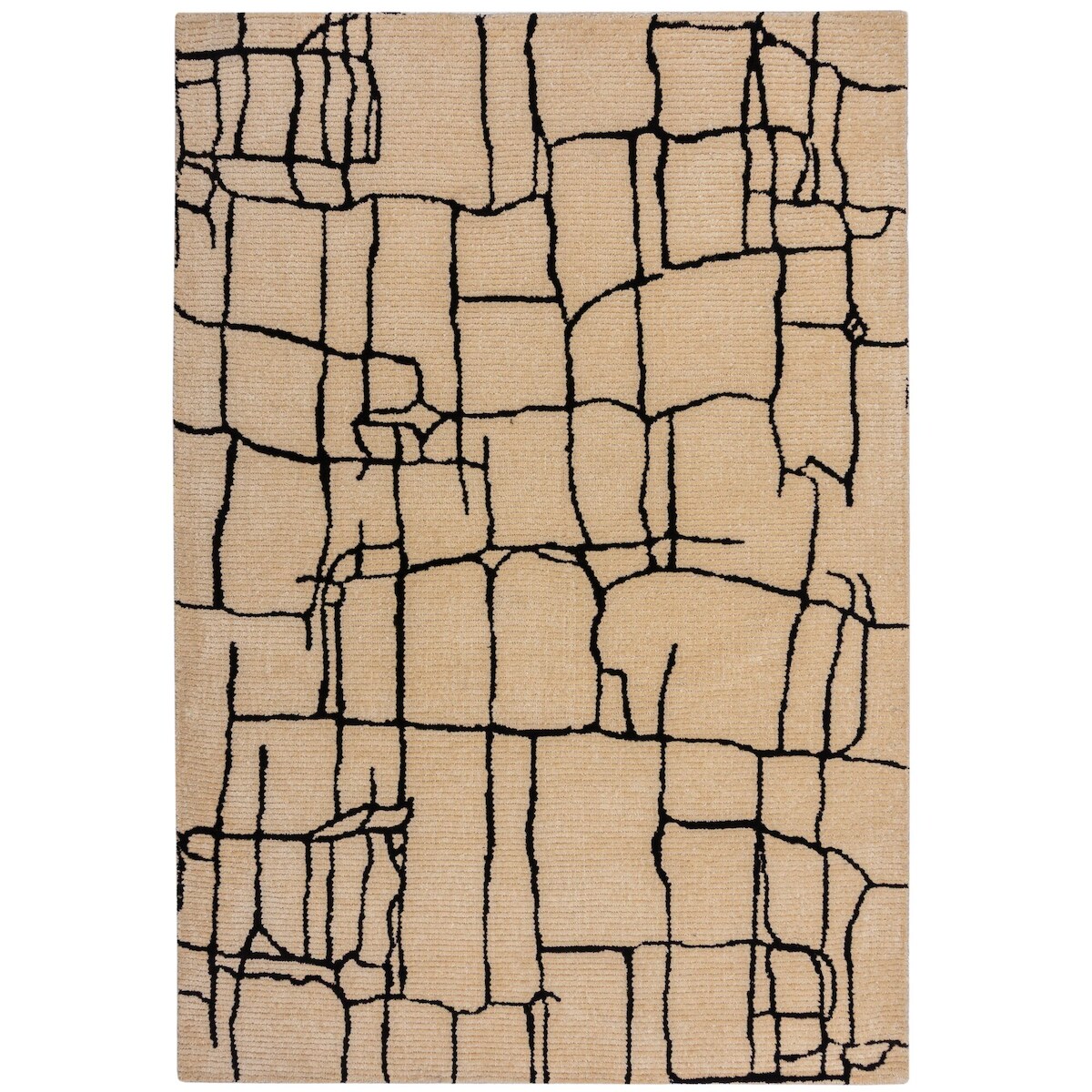 KADIMA DESIGN Wohnzimmerteppich abstrakt Creme-Schwarz, 12mm Florhöhe, Polyester Woll-Look, für Fußbodenheizung | 160x230cm