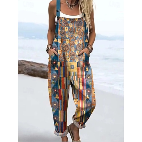 Per donna Salopette Attivo Grafico Senza Maniche Dritto Coulisse Vacanza Quotidiano Vestibilità comoda Rosso Blu marino Blu turchese Estate