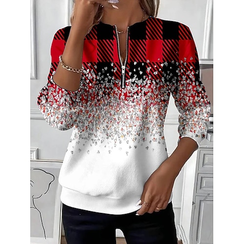 Per donna Felpa Pullover Felpe con cerniera Grafico Fiocco di neve Moda Casual Manica Lunga Girocollo Top Regolari Streetwear Abbigliamento Quotidiano Cerniera Stampato Nero Rosso Rosso e Bianco
