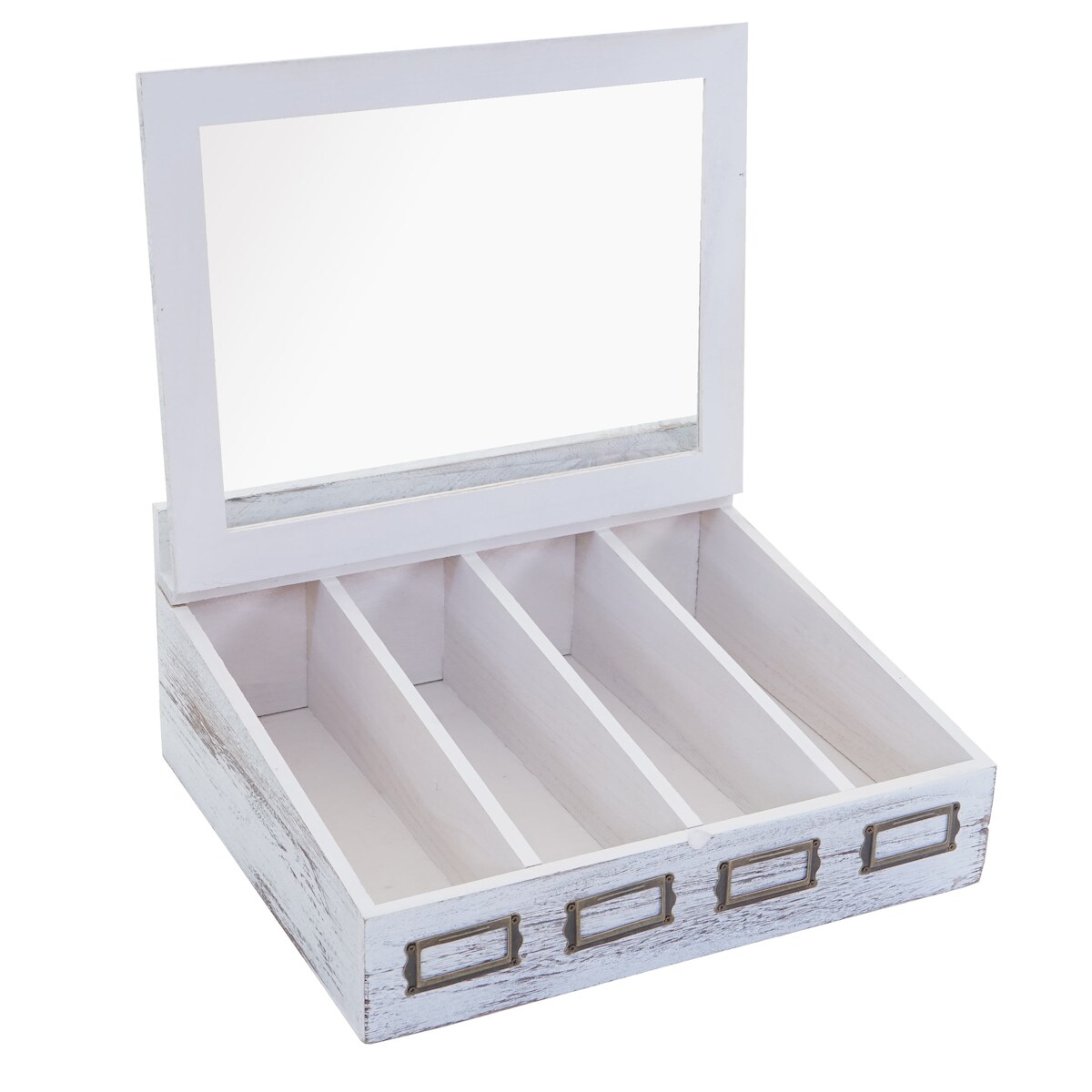 Mendler Aufbewahrungsbox HWC-C25, Teebox Schmuckkästchen Kiste, Paulownia 17x37x33cm ~ weiß, shabby