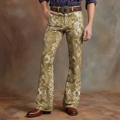 Per uomo Paisley Stampa Floreale Etnico Pantaloni da discoteca Pantaloni a zampa d'elefante anni '60 e '70 Misura del girovita medio Western Vintage Retrò All'aperto Vacanza Casuale Tasche Laterali