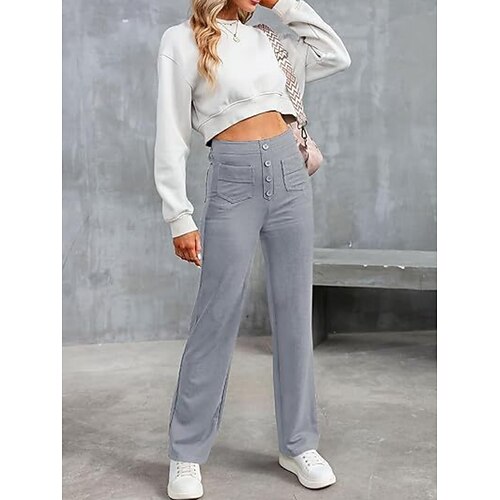 Per donna Gamba larga Chinos Vacanza Streetwear Casual Lunghezza intera Vita media Semplice Elastico in vita Confortevole Traspirante Micro-elastico All'aperto Vacanza Quotidiano Rosso Grigio chiaro