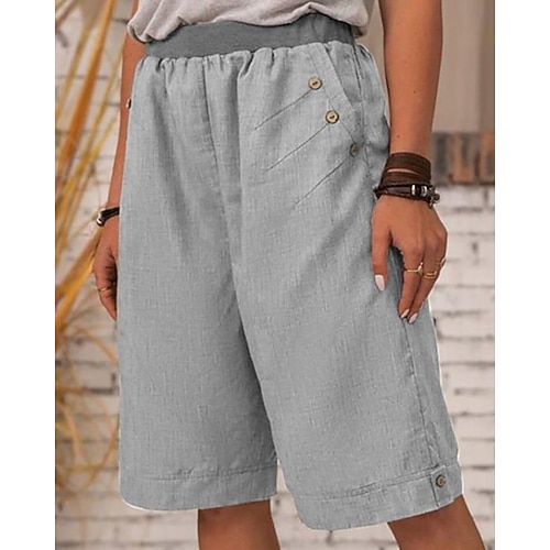 Per donna Pantaloncini ispirati al lino Chinos Shorts Essenziale Casual Corto Vita Alta Semplice Tasca Design con Coulisse Elastica Taglio alto Traspirabilità Morbido Micro-elastico Casual Quotidiano