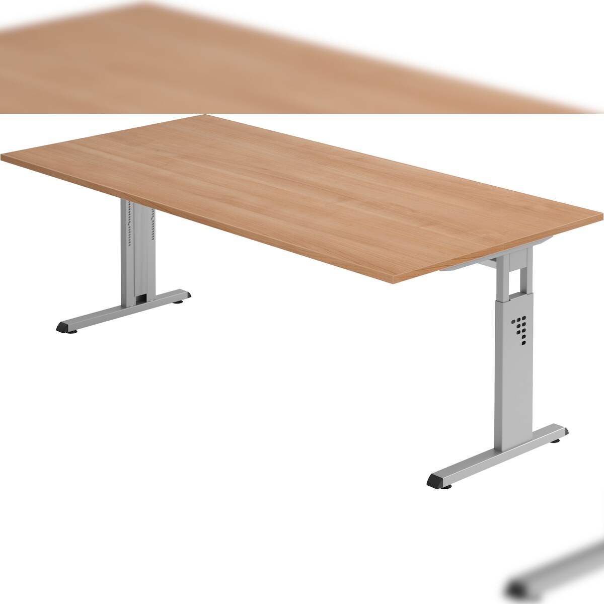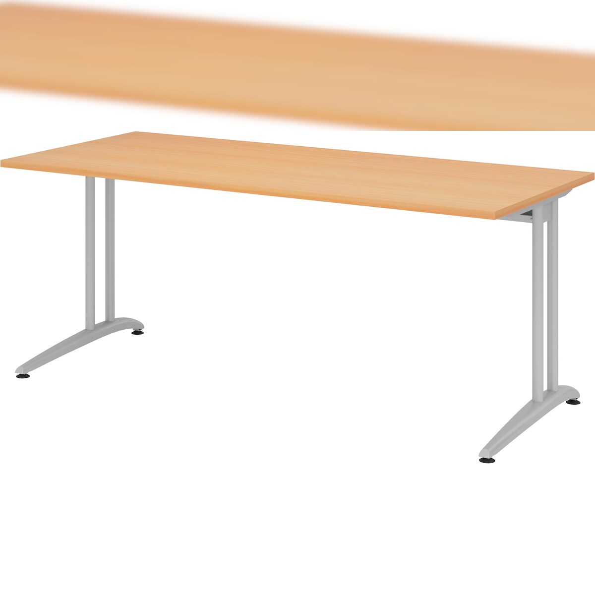 bümö Schreibtisch groß, B-Serie 180x80 cm, Tischplatte aus Holz in Buche, Gestell aus Metall in Silber - PC Tisch, großer Computertisch für's Büro,