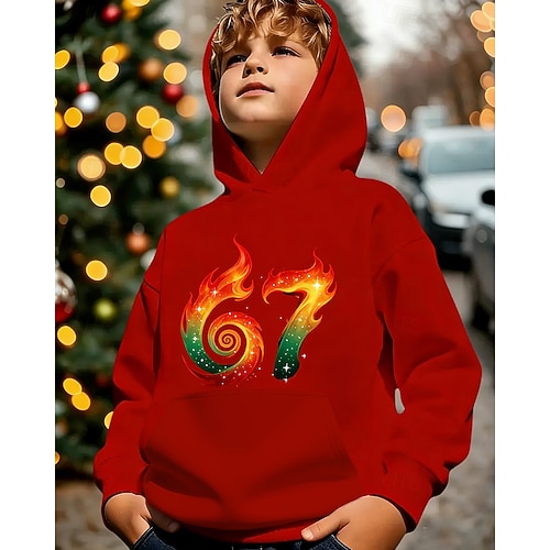 Ragazzi 3D Grafico Gergo divertente 67 Felpa con Cappuccio Maglione Manica Lunga Stampa 3D Primavera Autunno Sport Moda Streetwear Bambini 4-12 Anni Con cappuccio Casuale Quotidiano All'aperto