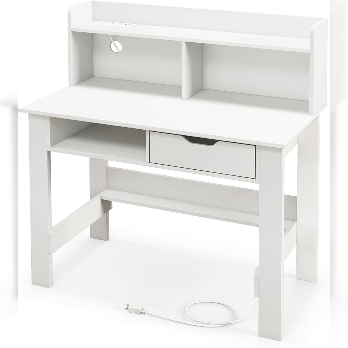 COSTWAY OSTWAY Schreibtisch mit Steckdosen, Kleiner Computertisch mit Zubehör, Offenem Fach & Schublade, PC Tisch