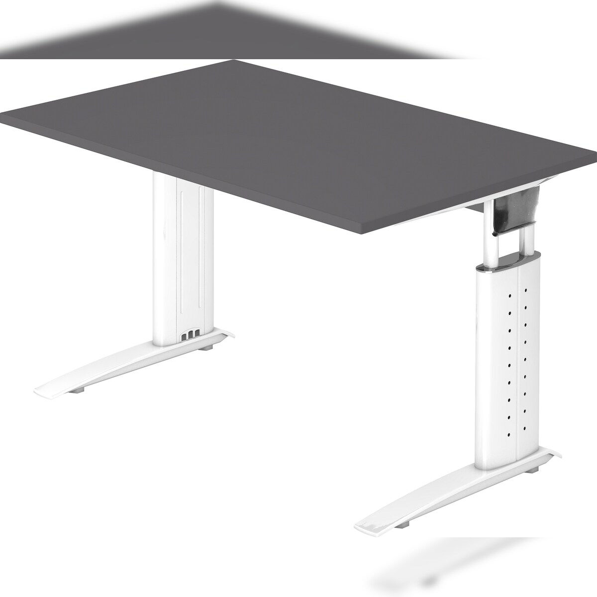bümö höhenverstellbarer Schreibtisch U-Serie 120x80 graphit, Gestell in weiß - PC Tisch klein für's Büro manuell höhenverstellbar, Computertisch