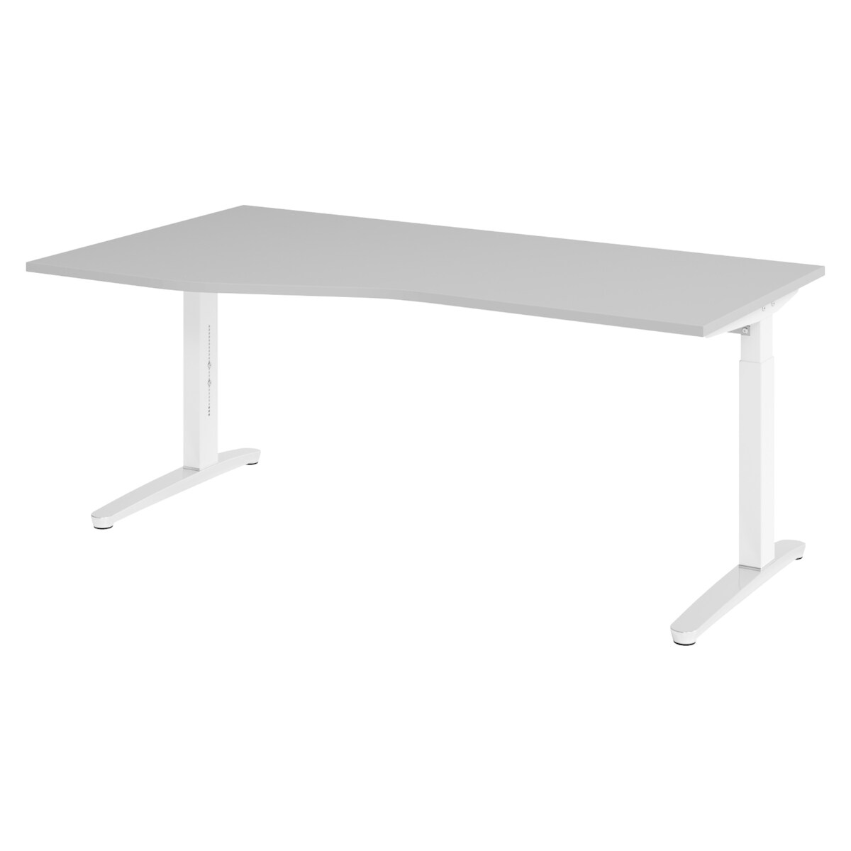 bümö Schreibtisch höhenverstellbar 180x100 cm in grau, Metallgestell in weiß/alu - Bürotisch groß, höhenverstellbarer Büroschreibtisch, Computertisch