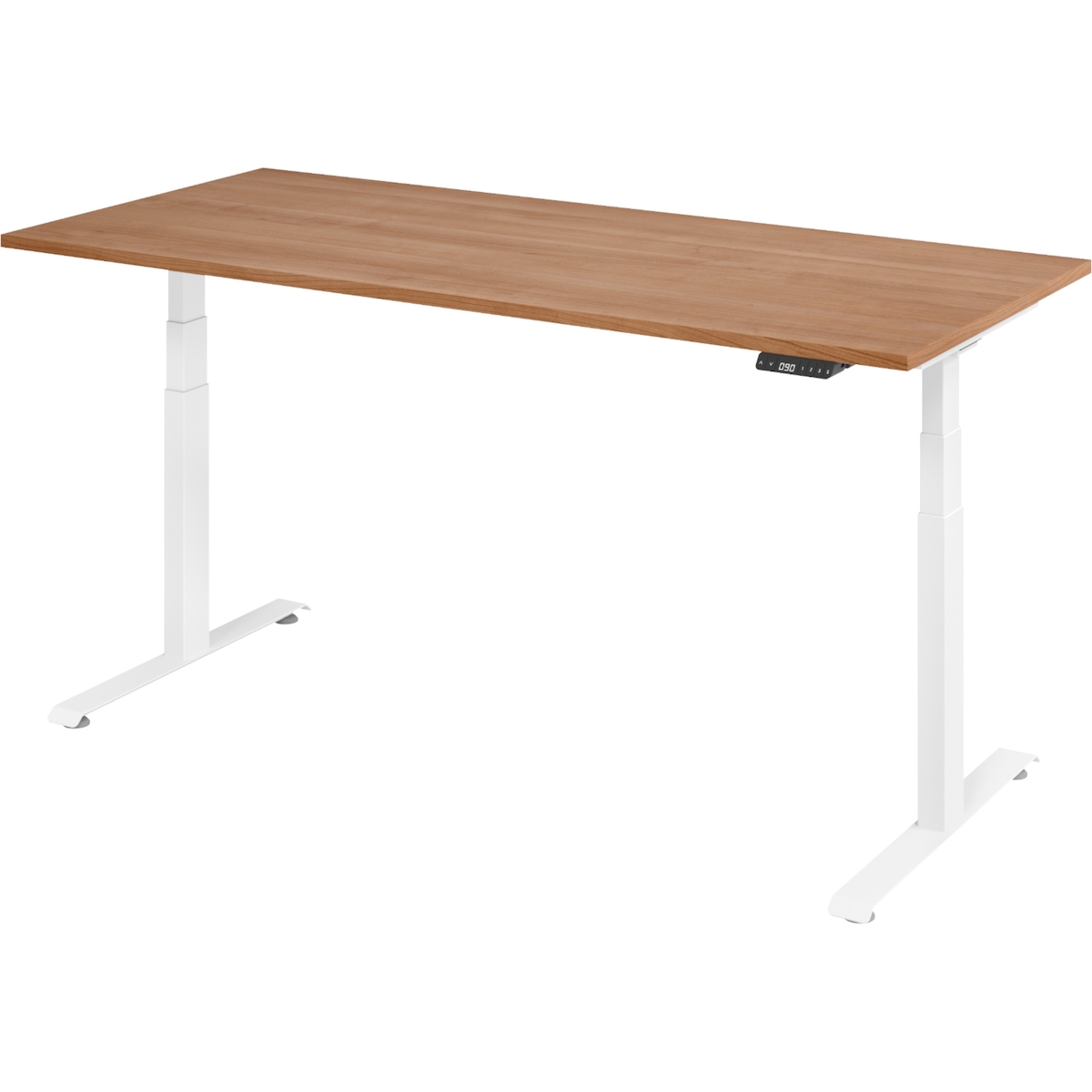 bümö höhenverstellbarer Schreibtisch 180 x 80 cm in Nussbaum, Gestell weiß - Höhenverstellbar Elektrisch Stehpult mit 3-fach Speicher, Computertisch,