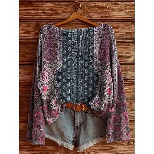 Per donna Blusa Paisley A righe Elegante Casual Manica Lunga Collo quadrato Top Regolari Quotidiano Ferie Abbigliamento da vacanza Stampato Nero Rosa Blu Verde Grigio Primavera Autunno Inverno