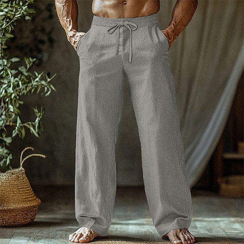Per uomo Pantaloni di Lino Pantaloni Pantaloni Estivi Pantaloni Larghi Pantaloni da Spiaggia Coulisse Elastico in vita Confezione multipla Semplice Comodità Traspirante Lunghezza intera All'aperto
