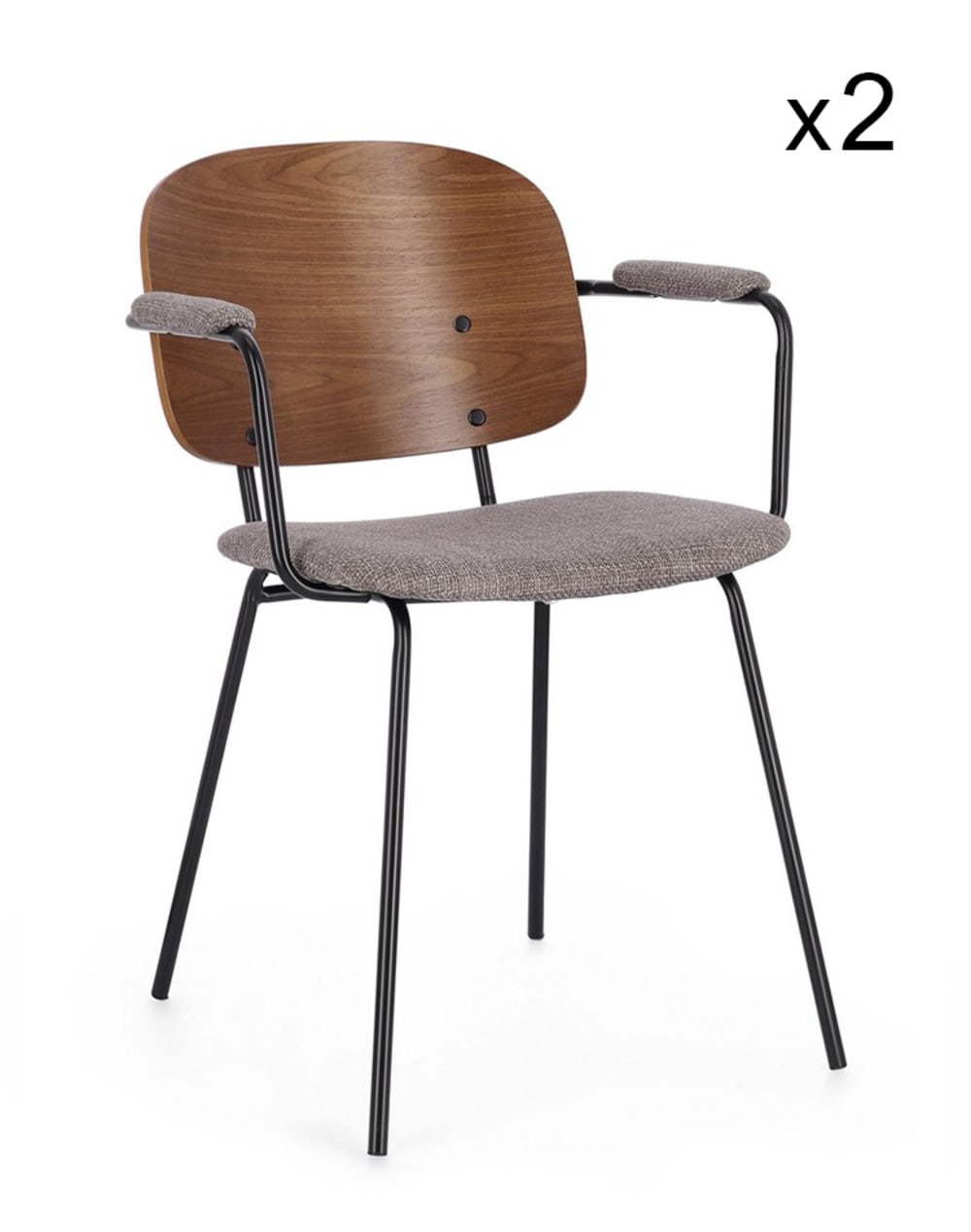 Set di 2 sedie in tessuto grigio e legno marrone con gambe nere