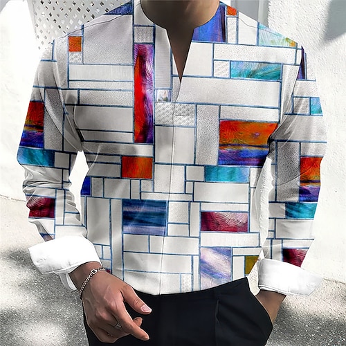 Per uomo Illusione ottica Motivo Geometrico Camicia Camicia con Bottoni Manica Lunga Astratto Abbigliamento quotidiano Uscire Primavera Estate Collo ripiegato Stampato Bottonato Blu Giallo Rosso