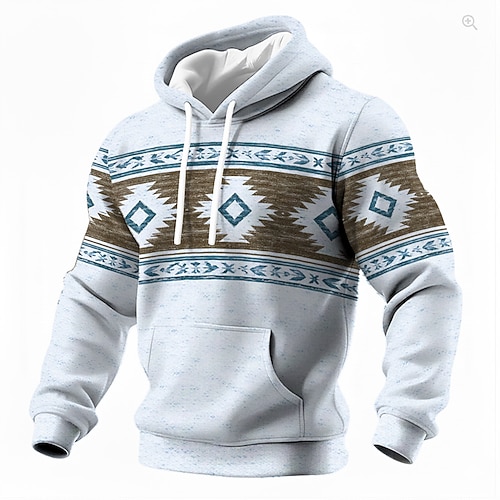 Felpa con cappuccio da uomo, stile tribale azteco sud-occidentale, con motivo geometrico, manica lunga, casual, bianca e beige, con tasca, abbigliamento, abbigliamento s m l xl xxl xxxl