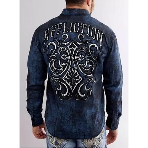 Per uomo Stampe Grafiche Pistola Camicia Camicia Western Camicia da cowboy Manica Lunga Moda Designer Casual All'aperto Quotidiano Autunno Inverno Collo ripiegato Stampato Bottonato Nero Nero