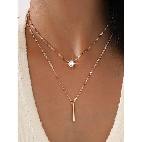 collana da donna con pendente a goccia d'acqua in oro a doppio strato, stile elegante e semplice, adatta per le donne attente alla moda da indossare in occasioni casual e di festa