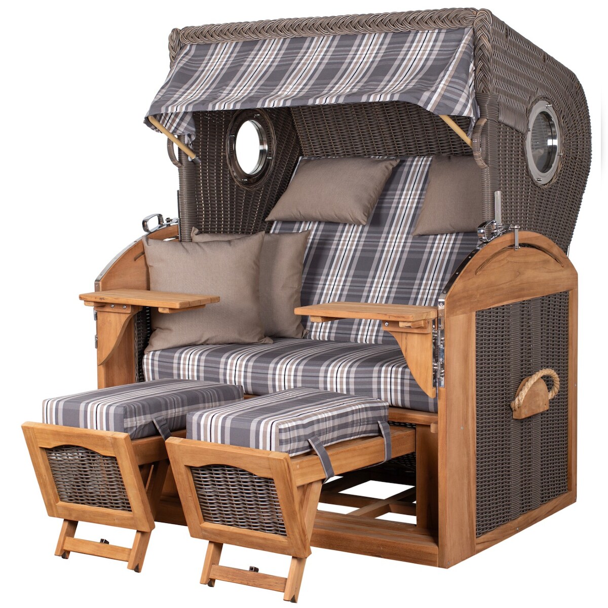 Mr. Deko Strandkorb Komplettset - bene living - Ammersee Teak - PE grau - Modell 593 - inkl. Liftersystem