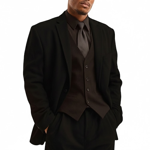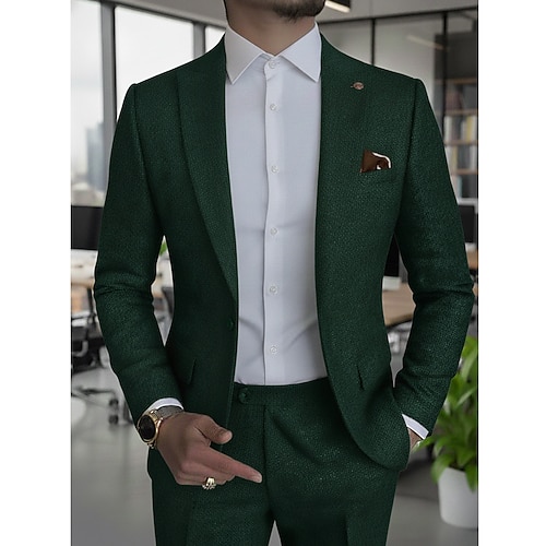 Uomo Matrimonio Affari Completi in Tweed Bavero classico Nero Borgogna Affari Formale Tinta unita Vestibilità su misura 2 pezzi Monopetto a un bottone