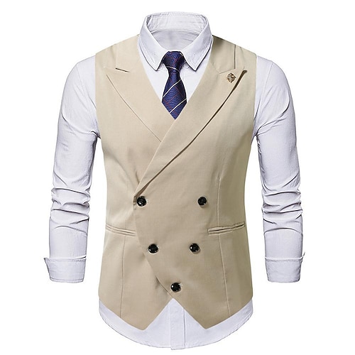 gilet da uomo, gilet da sposa, gilet da testimone, chiusura con colletto, gilet vintage classico tinta unita, nero beige, vestibilità su misura, doppiopetto, cinque bottoni