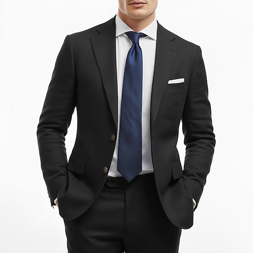 Uomo Casuale Feste Completi in Lino Bavero classico Nero Bianco Moda Leggero Tinta unita Vestibilità su misura 2 pezzi Monopetto Due Bottoni