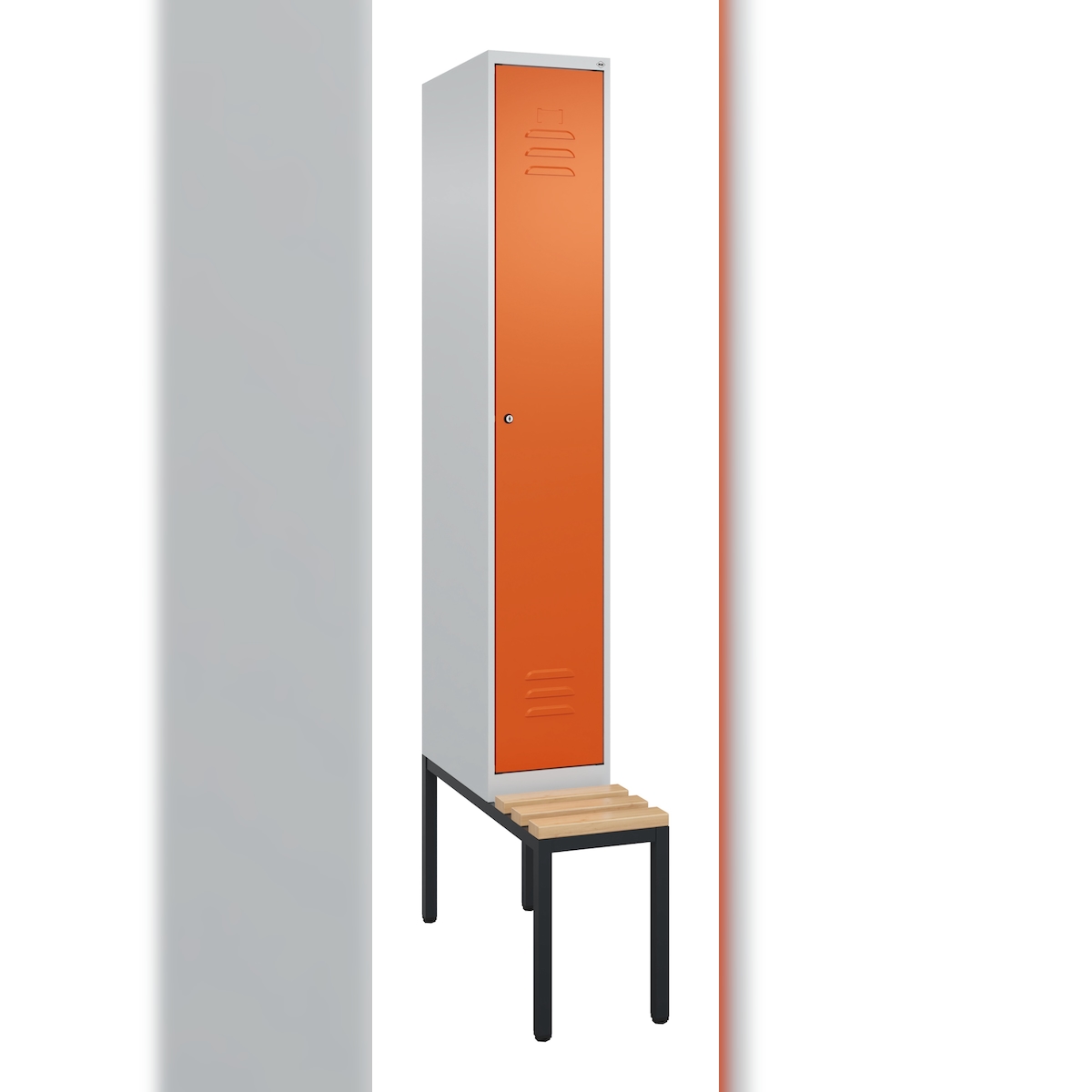 C+P Spind Classic PLUS, Buche untergebaute Sitzbank 1 Abteil, HxBxT 212x30x82cm, Zylinderschloss, Hellgrau/Reinorange von PROREGAL
