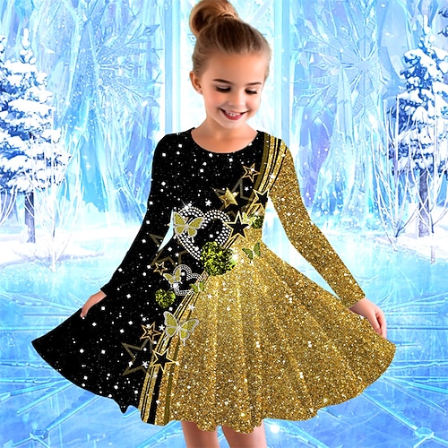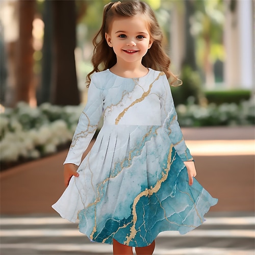 ragazze' 3D Grafico Abito Manica Lunga Estate Primavera Vacanza Quotidiano Ferie Bello Dolce Bambini 4-12 Anni Vestito Casual Abito a trapezio Lunghezza al ginocchio Vestibilità regolare