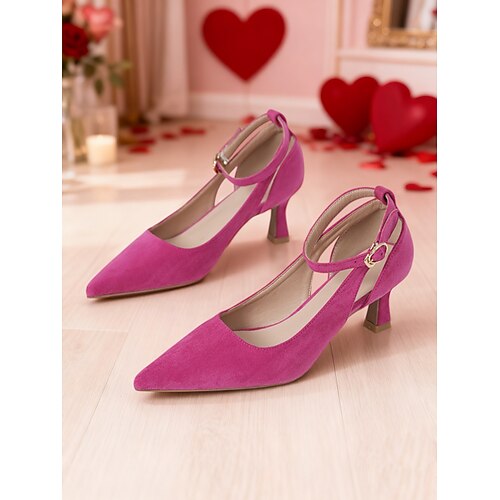 décolleté da donna con tacco a gattino e cinturino alla caviglia rosa – romantiche scarpe eleganti con punta a punta, dolce stile San Valentino per appuntamenti, feste e occasioni speciali