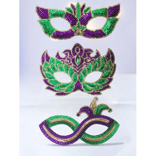 set di maschere da ballo da donna in 3 pezzi, verdi e viola con glitter, per feste di Natale e balli festa di famiglia