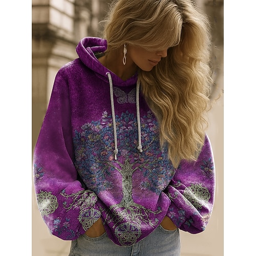 Per donna Felpa con cappuccio Floreale Grafico Elegante Caldo Attivo Manica Lunga Con Cappuccio Top Regolari Streetwear Abbigliamento Quotidiano Casuale Patchwork Stampato Blu Rosso Viola Fucsia Verde