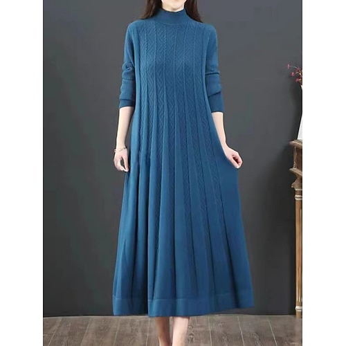 Per donna Abito maglione Elegante Casual Morbido Colore Puro A Coste Dolcevita Lavorato a maglia Manica Lunga Top lunghi Maglia All'aperto Quotidiano Weekend Blu Nero Autunno Inverno