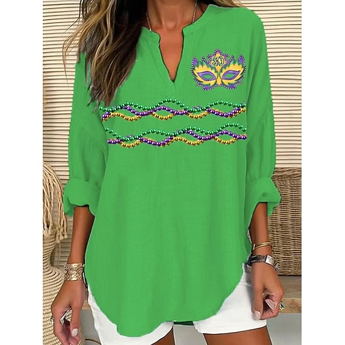 Martedì grasso Per donna Camicia Grafico Vintage Quotidiano Elegante Manica Lunga Scollo a V Top Regolari Quotidiano Ferie Stampato Blu Nero Bianco Giallo Viola Estate Primavera