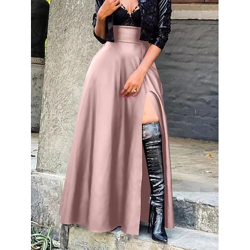 Per donna Gonna Linea A Elegante Moda Casual Maxi Vita Alta Gonne Semplice Con Spacco Inelastico Feste Streetwear Vinaccia Nero Rosa Marrone Primavera Finta pelle