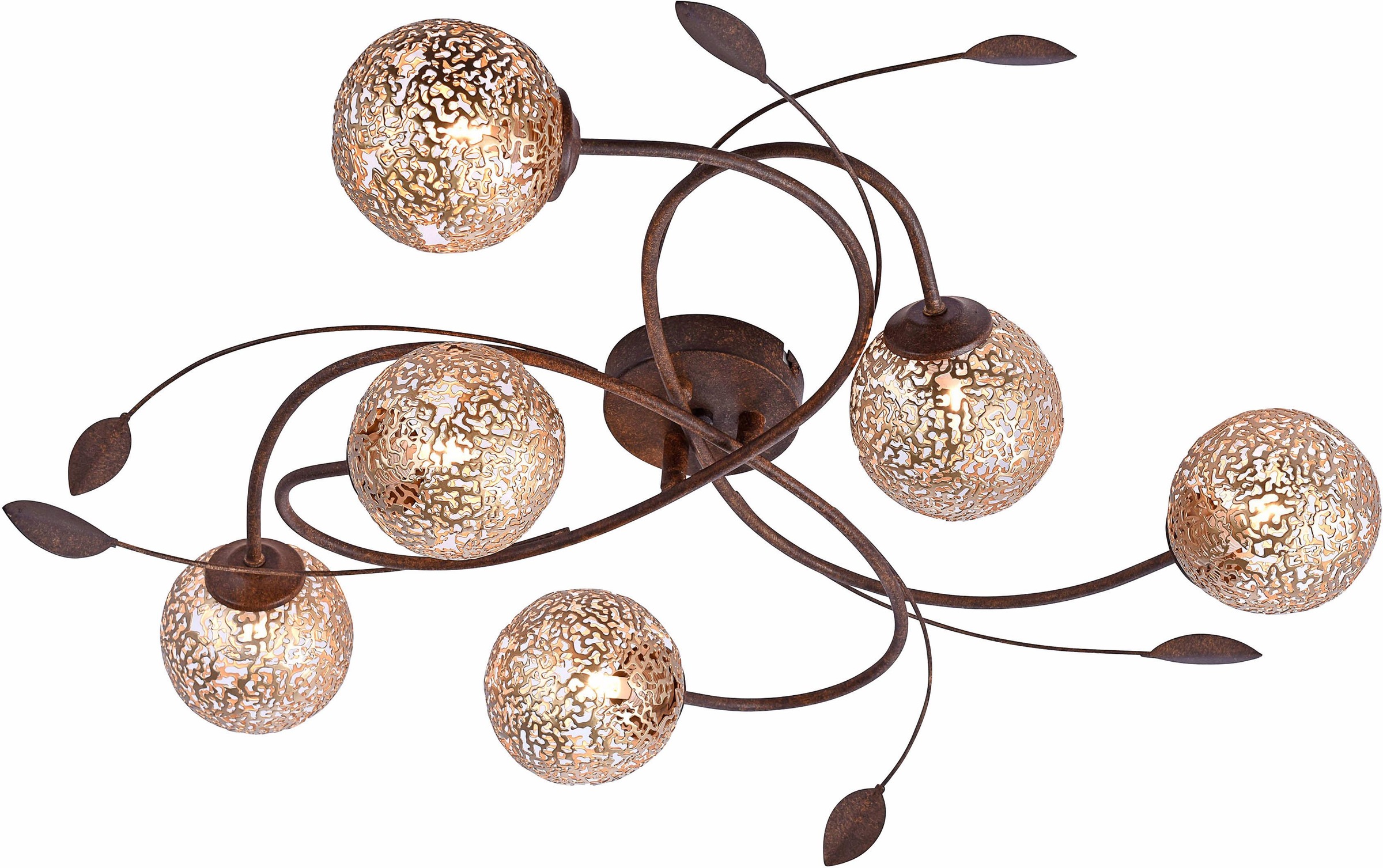 PAUL NEUHAUS Deckenleuchte "GRETA", braun (rostbraun, goldfarben), Ø 67cm H: 15,5cm, Lampen, mit goldfarbenen Metallschirmen, ohne Leuchtmittel