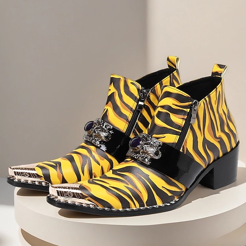 stivaletti da uomo con stampa tigre gialla - pelle audace con punta in metallo e design accattivante, ideali per eventi casual e serali all'avanguardia