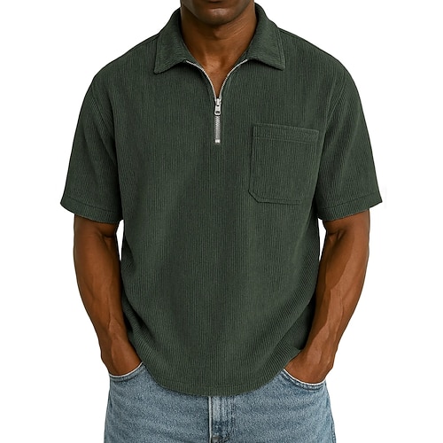 Per uomo Polo Polo con zip a un quarto Casuale Sportivo Bavero Zip a un quarto Manica Corta Moda Essenziale Semplice Zip a un quarto Estate Primavera Vestibilità standard Esercito verde Vinaccia Nero