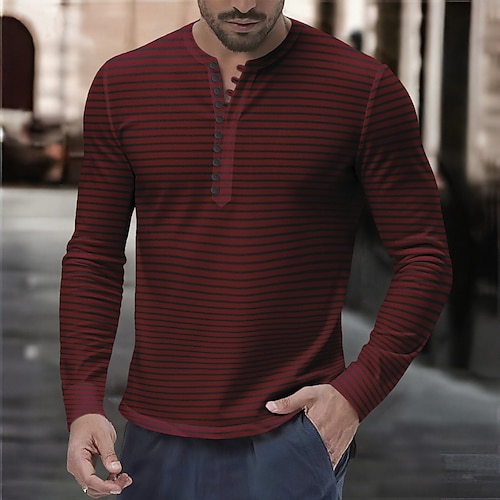 Per uomo Maglia Henley Maglietta Top Henley Manica Lunga Strisce orizzontali Moda Designer Casual Bottoni Henley All'aperto Casuale Quotidiano Estate Primavera Tutte le stagioni Vinaccia Giallo Blu