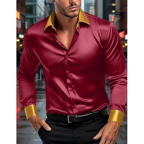 Per uomo Camicie Camicia abbottonata Camicia non stirabile A quadri / A righe / Chevron Matrimonio Ufficio e carriera Blu chiaro Nero Bianco Rosso Manica lunga Collo ripiegabile Per tutte le stagioni
