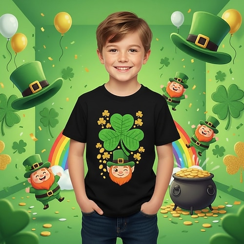 100% Cotone Giorno di San Patrizio Bambini Ragazzi Nero Trifoglio Giorno di San Patrizio Maglietta Blusa Girocollo Manica Corta All'aperto Abbigliamento Quotidiano Moda Streetwear Designer Stampa