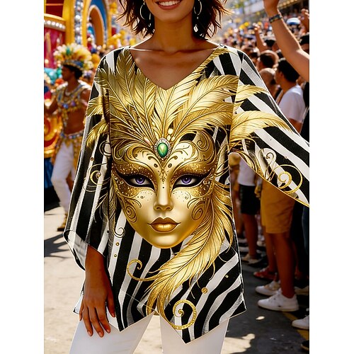 Blusa da Donna Carnival Graphic Strisce Astratte Vintage Elegante Casual Maniche 3/4 Collo a V Tops Regolari Daily Festa Stampa Gialla Rossa Viola Arancione Verde Primavera Autunno