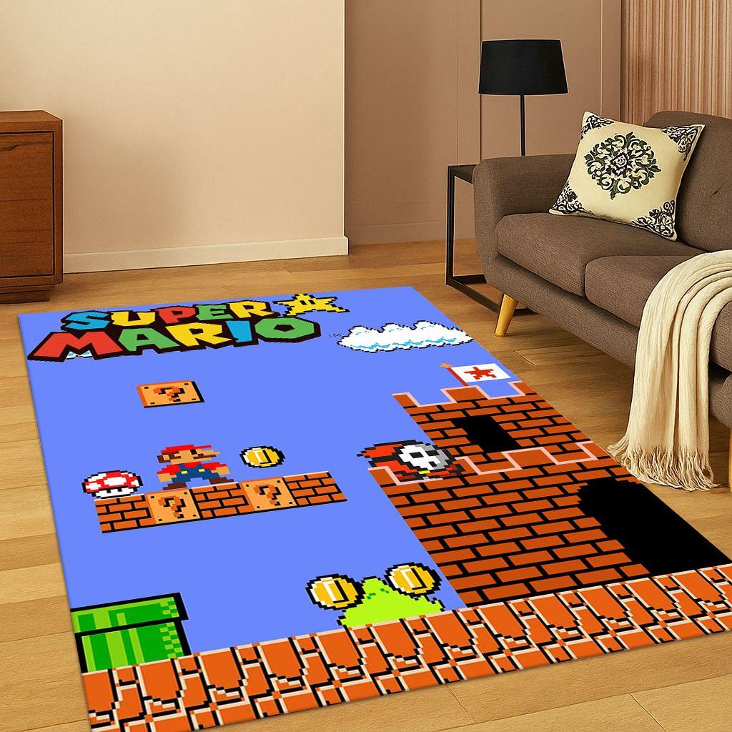 3D Super Mario Bros Cartoon Schattig Kinder Tapijt Vloerkleed voor Speelkamer Woonkamer Slaapkamer Deurmat Decoratie, Antislip Game Vloermat Cadeau