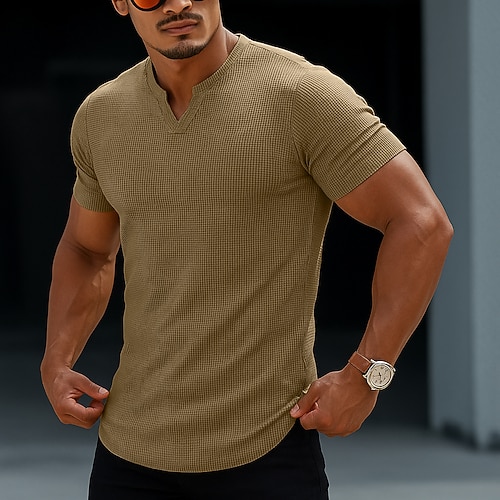 Per uomo Maglietta Waffle Maglietta Camicia a Maniche Corte Manica Corta Girocollo Primavera Estate Semplice Moda Designer Base Vacanza Streetwear Uscire Nero Bianco Blu reale Maglietta Top per Uomo