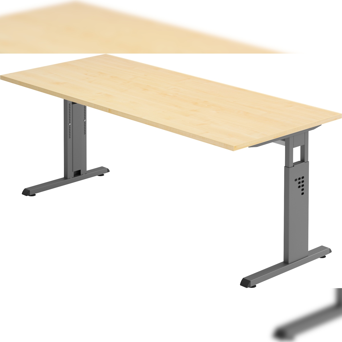 bümö höhenverstellbarer Schreibtisch 160x80 cm in Ahorn, Gestell graphit - PC Tisch höhenverstellbar & groß, höhenverstellbarer Tisch Büro, großer