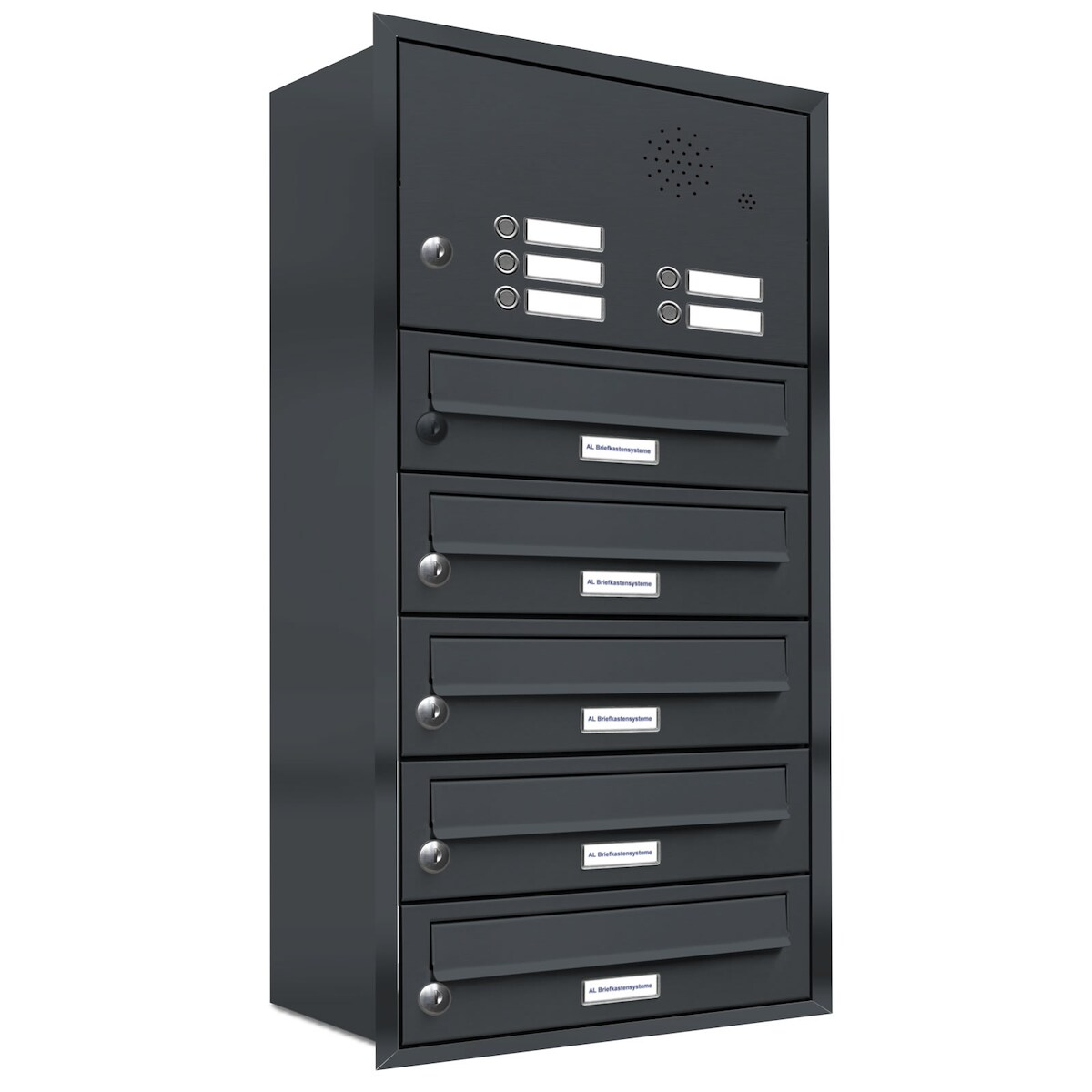AL Briefkastensysteme 5 Fächer Premium Unterputz Briefkasten Anlage mit Klingeln RAL 7016 Anthrazit Grau, A4, wetterfest, Artikelnummer 132P5U1KSP7016
