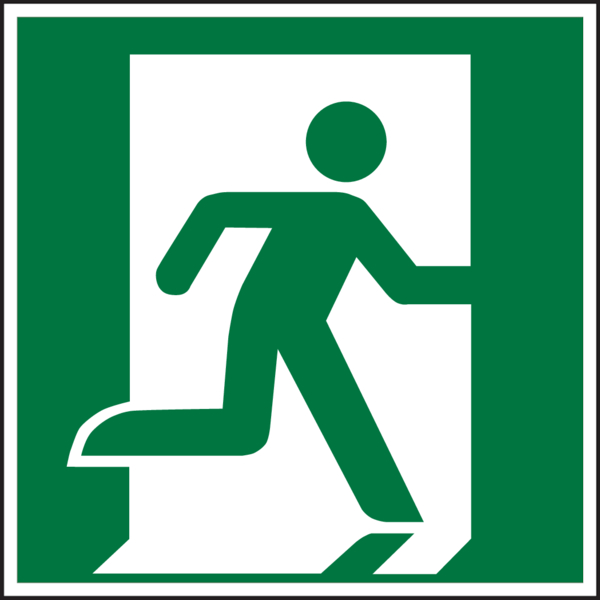 Rettungszeichen, Rettungsweg/Notausgang rechtsweisend E002 - ASR A1.3 (DIN EN ISO 7010) - 150x150x1.5 mm Kunststoff nachleuchtend