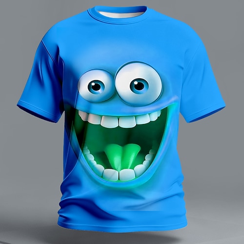 Maglietta grafica divertente con faccina gialla che ride per uomo, stampa 3D con grande bocca aperta, maglietta casual da uomo con design umoristico, abbigliamento a maniche corte, s m l xl xxl xxxl