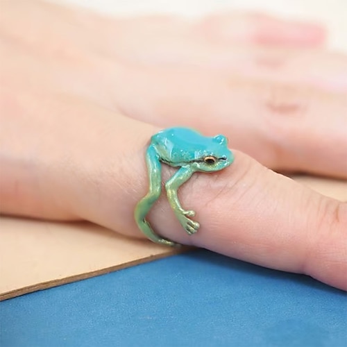 anello della raganella, anello regolabile della raganella, anello della rana fatto a mano, anelli vintage per le dita degli animali, divertente anello dell'ultima raganella, anello aperto gioielli