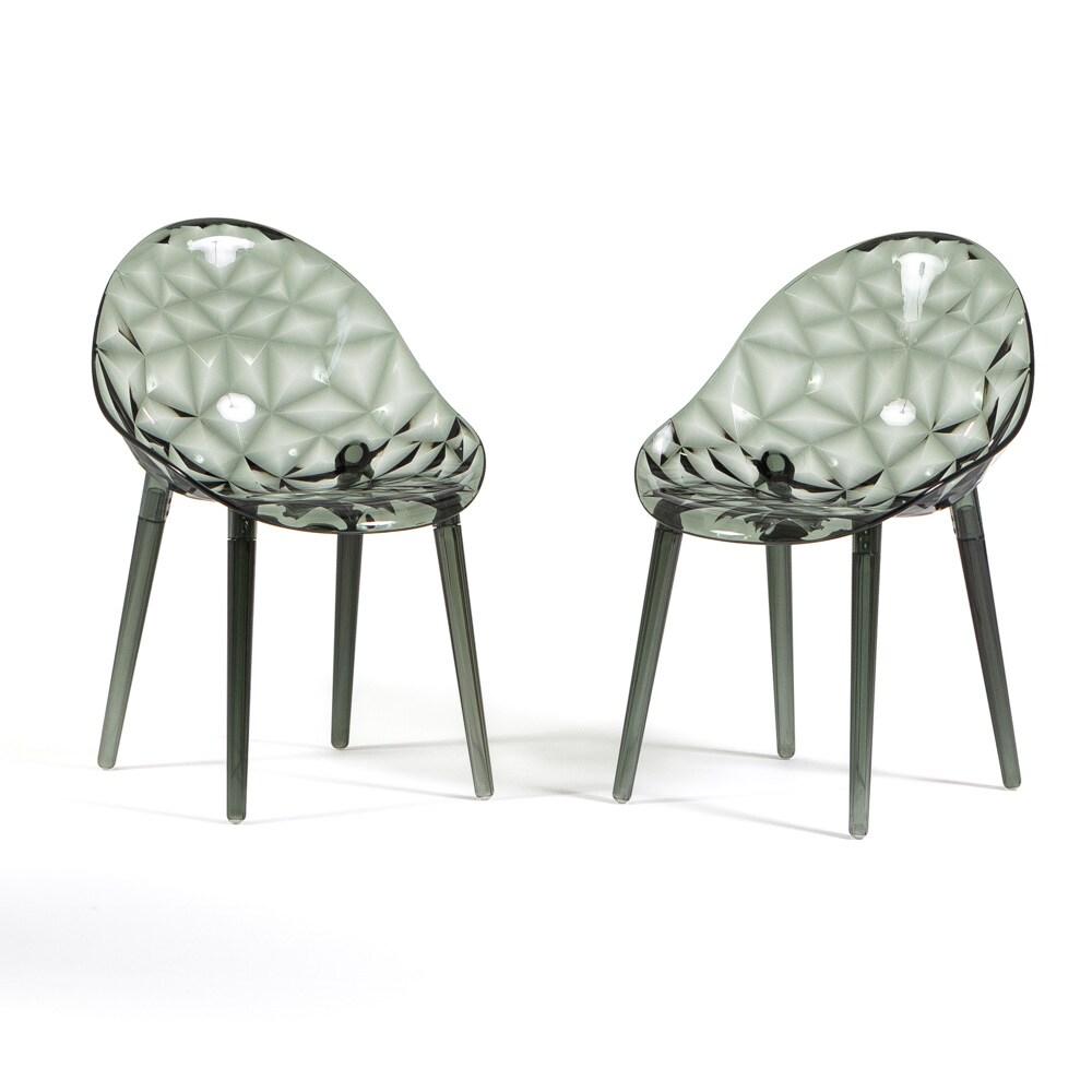 RATTATAN Set aus 2 transparenten Stühlen aus Polycarbonat, robust, ergonomisch, für Bar, Restaurant, Küche oder Garten, modernes Design–Diamante–Rauchgrau