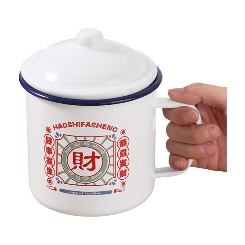 BJ Emaillebecher [Glücksbecher] – Trinkbecher mit großem Fassungsvermögen, vintage-Design, 1200 ml