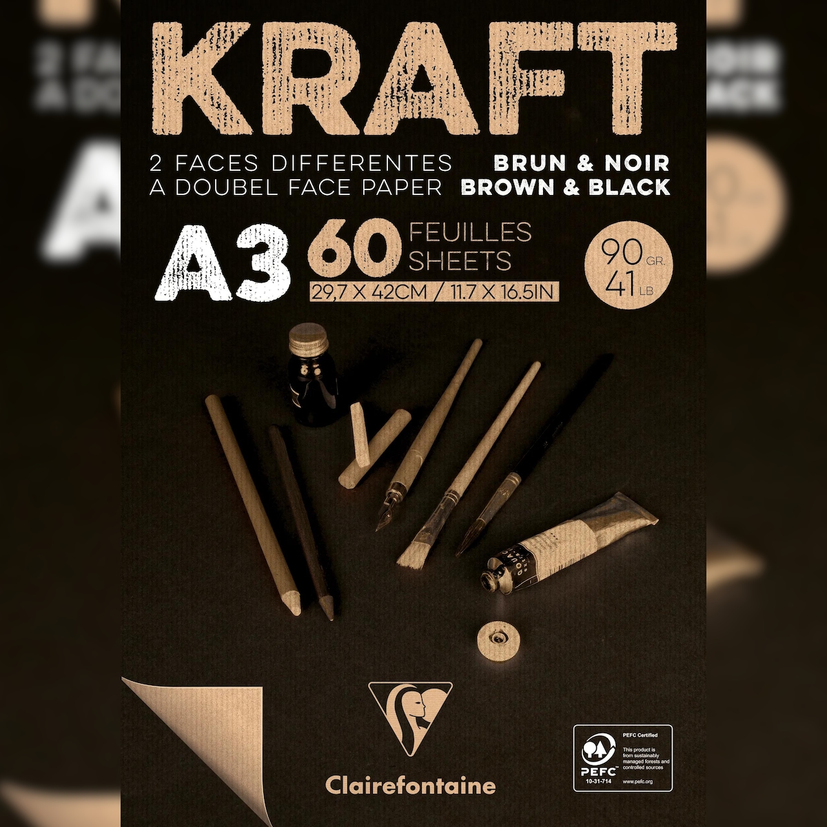 Clairefontaine 2x Block Kraftpapier, zweifarbig, geleimt, 60 Blatt A3 90g - 975819C